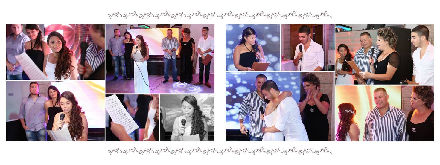 המעצב המיומן שלנו יודע להוציא מכל אירוע את העיצוב היפה ביותר והמתאים ביותר לרוח ולסגנון האירוע. לאחר בחירת התמונות, יערוך המעצב את התמונות בתוך האלבום ולאחר מכן ישלח אליכם את הסקיצה לאישור.